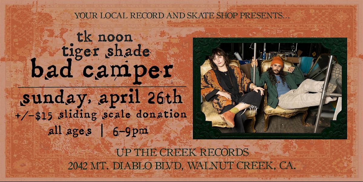 Celia and Fish, of Oakland-based indie rock 5-piece Bad Camper, provoke the soul by weaving powerful harmonies with sentimental lyrics. Soaring electric guitar melodies, powerful rhythm section grooves, and deep lyrical themes put the listener in a state of awareness of the sonic chapters that unfold before them.