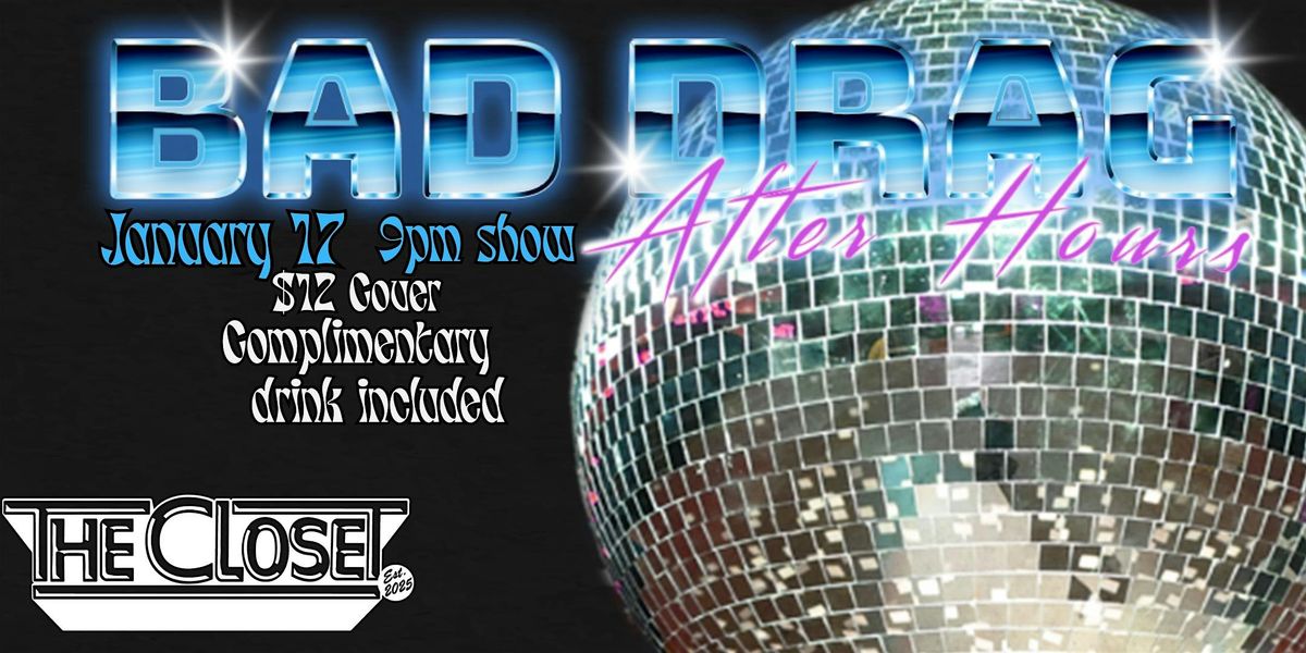 Bad Drag & The Closet wanna give you the most bang for your buck so we are offering a $12 cover with a complimentary drink -> 8pm doors // 9pm show