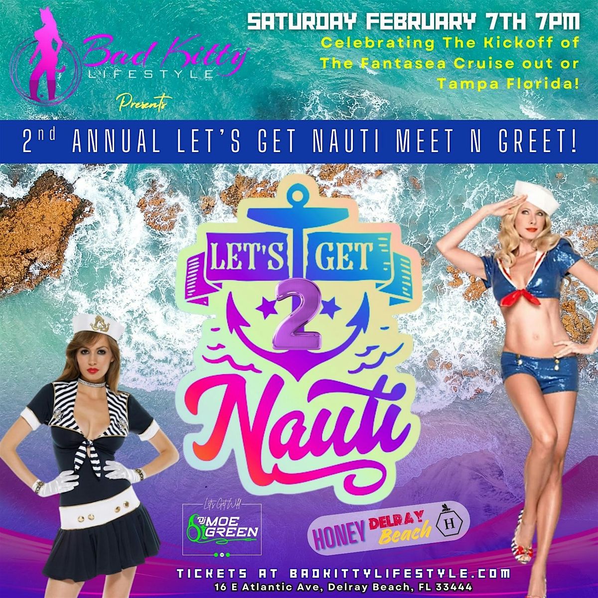 Let's Get Nauti is a nautical theme where we dress in sailor hats, get naughty, drink rum and round up all the South Florida Lifestyle Cruisers. The Party kicks off at Honey in Delray Beach where legendary Lifestyle Cruise DJ Moe Green will be holding down the music! Its our monthly Meet n Greet and we welcome all the sexy couples, single ladies and select single guys. Door open at 7pm and we take the party to 11pm. That's when Honey starts to let in the general public.