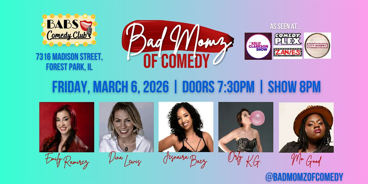 Bad Momz of Comedy, as seen on the Kelly Clarkson Show, continues to sell out shows across the country -- making moms and men laugh. Founded by Chicago-based comic Orly KG in 2022, each Bad Momz of Comedy show utilizes a small showcase of hilarious comics from its growing roster of 80+ influential mom/female comics. Previously packed venues include Zanies Nashville, Chicago, and Rosemont, Illinois as well as St. Louis City Winery, Chicago's Theater on the Lake, and more. @badmomzofcomedy on all socials.