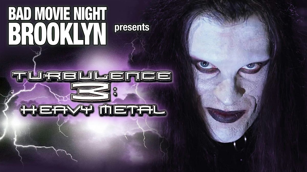 Bad Movie Night Brooklyn is back, and we’re taking over Lucky 13 Saloon! Grab a drink, grab some munchies, and get ready to get high, as we’ll be spending 4/20 aboard airline Flight 666 for Turbulence 3: Heavy Metal! Released months prior to 9/11, this airplane thriller became a noteworthy bad movie contender for its bonkers goth-sploitation elevator pitch, twist-filled plot, and limited understanding of the Web as we know it! It’s possibly the craziest airplane movie you’ll ever see, and there’s no better place to experience this movie than in the metal decked halls of Lucky 13 Saloon!