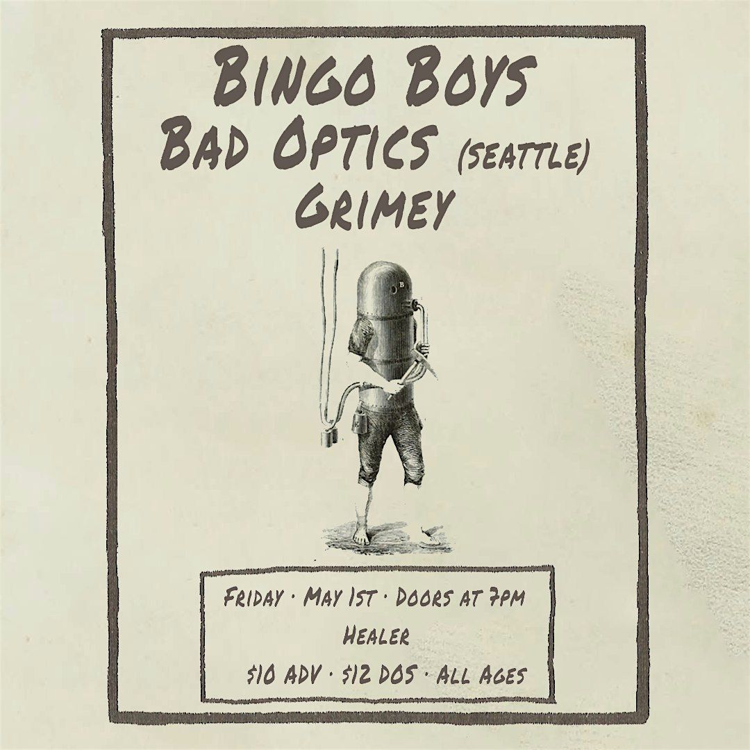 Seattle's Bad Optics stop by Healer on May 1st, 2026. They'll be joined by Indy's Bingo Boys and Grimey.About this Event