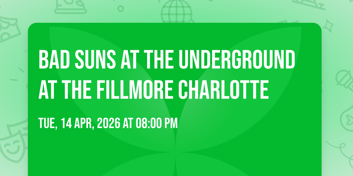 ✨ Enter a world of endless possibilities at Bad Suns at The Underground at The Fillmore Charlotte, where every moment tells a story! 🏛️ The stunning The Underground at The Fillmore Charlotte in vibrant Charlotte, NC transforms into a realm of wonder on April 14th, 2026 at 08:00 PM. 🌟 They have crafted an experience that goes beyond the ordinary, combining elements of surprise, delight, and pure entertainment. Every detail has been thoughtfully considered to ensure your journey with us is nothing short of extraordinary. 🎯 Join fellow adventure seekers and memory makers in this celebration of imagination and innovation. 🎊 Reserve your spot today and be part of something truly special!