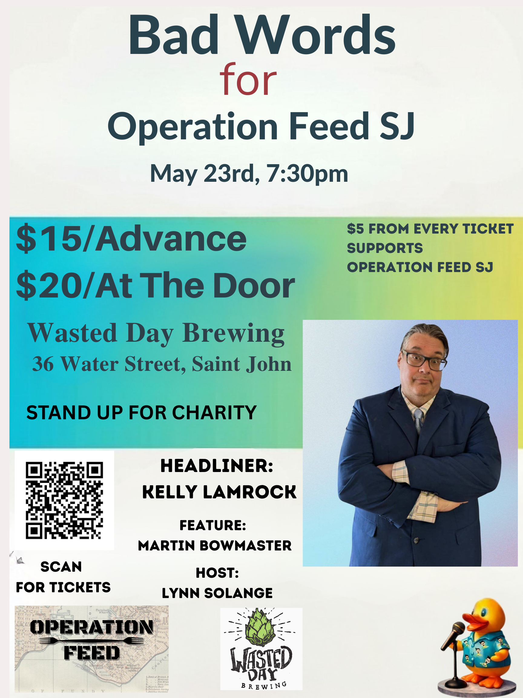 Bad Words for a Good Cause is bringing a stacked lineup of stand-up comedy to Saint John in support of Operation Feed SJ, helping provide meals and support for people experiencing homelessness in our community.
