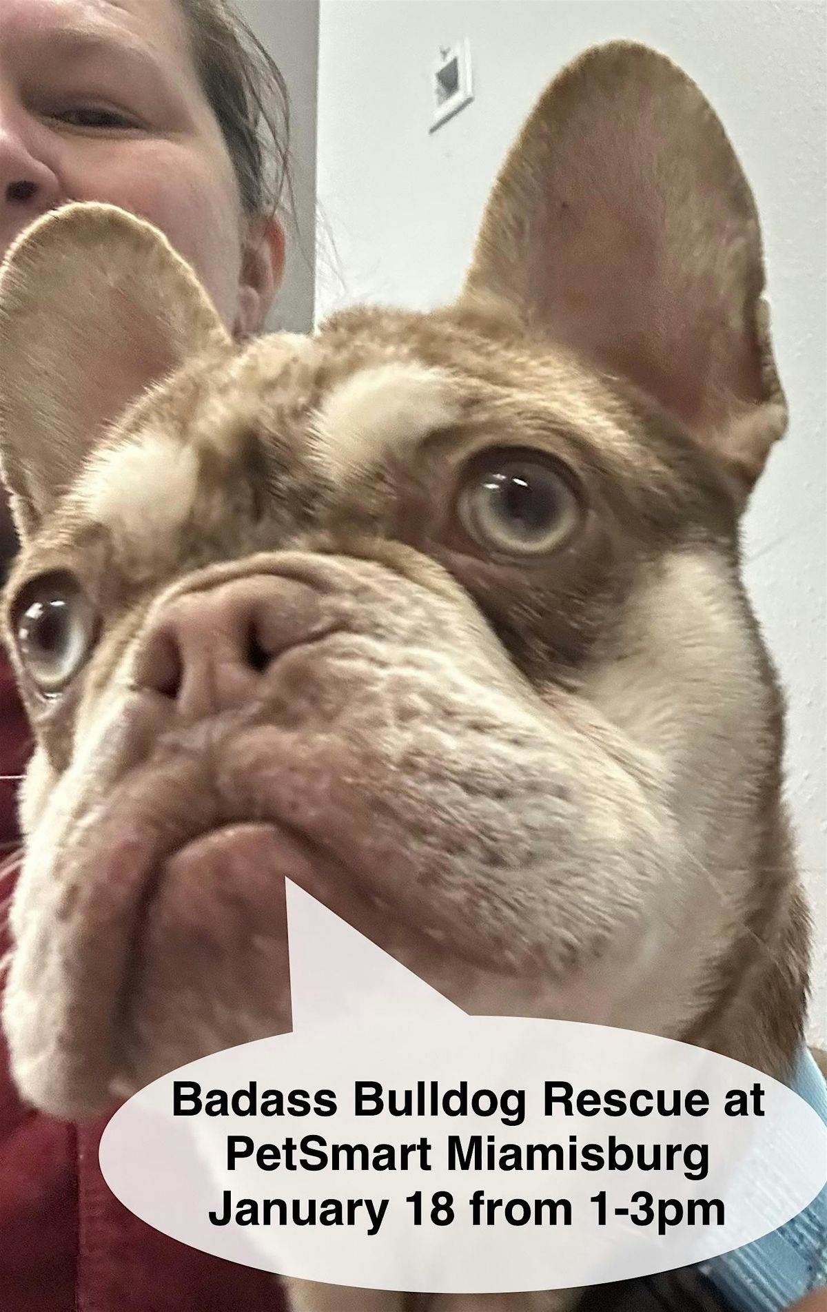Due to space constraints, we have changed the venue location for the rescue for tomorrow to PetSmart in Miamisburg. We will be there with fantastic dogs from 1 to 3 PM. Awaiting and you will with lots of bulldog kisses