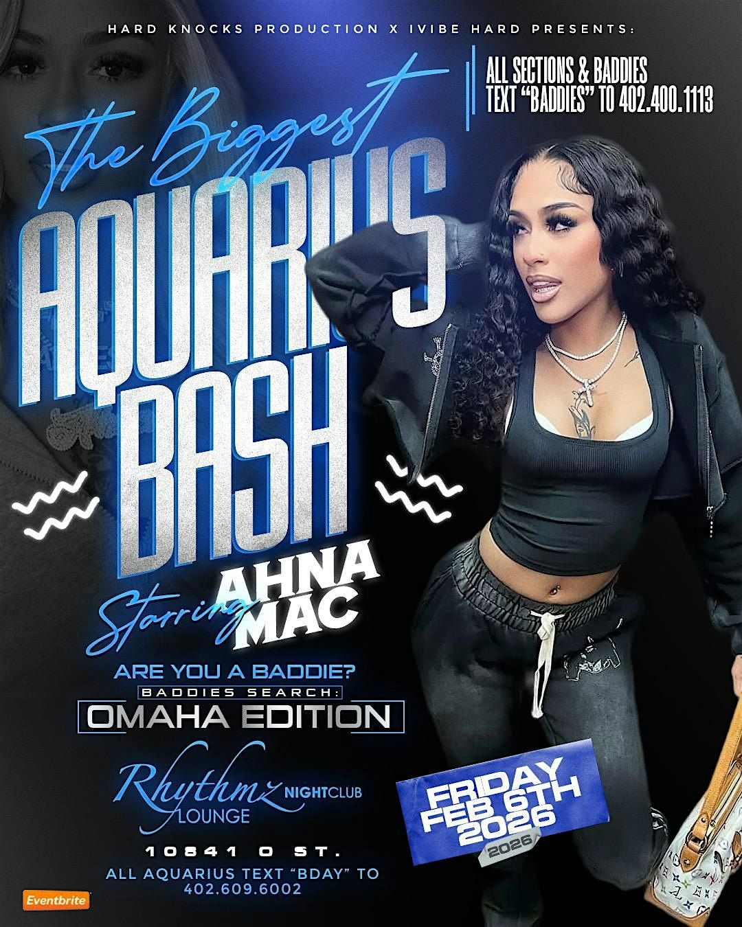 We're searching for Baddies in Omaha with one of the biggest baddies herself Ahna Mac. Meet us at Rhythmz for The Biggest Aquarius Bash !!!About this Event