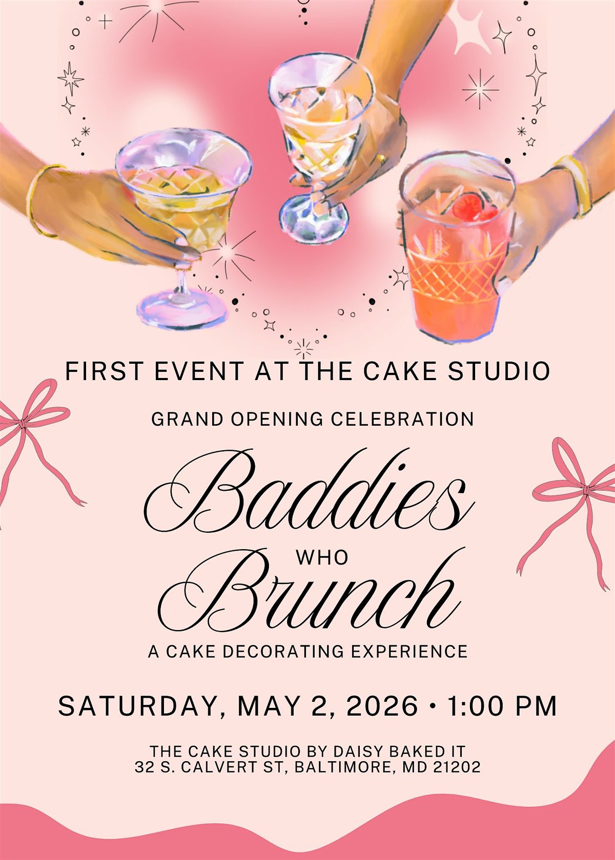 Join us for Baddies Who Brunch: The Grand Opening Celebration, the very first event hosted inside our brand new cake decorating studio in downtown Baltimore. Be among the first guests to experience The Cake Studio and celebrate this exciting milestone with us!