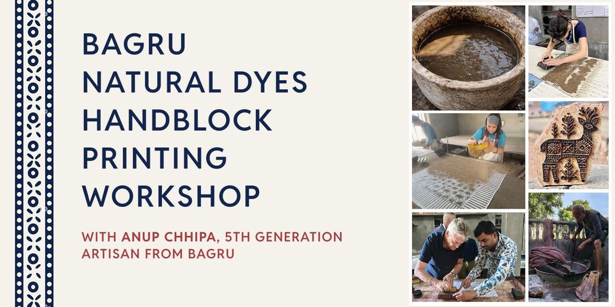 Shilpa Kalā Nidhi brings to you a hands-on Bagru handblock printing experience led by master artisan ANUP CHHIPA from Rajasthan. This is an immersive workshop where you get to work with natural dyes, traditional Dabu mud-resist printing, and Shibori tie-dye techniques. You will create and take home your own printed stole, shirt, or tote bag, designed by you.