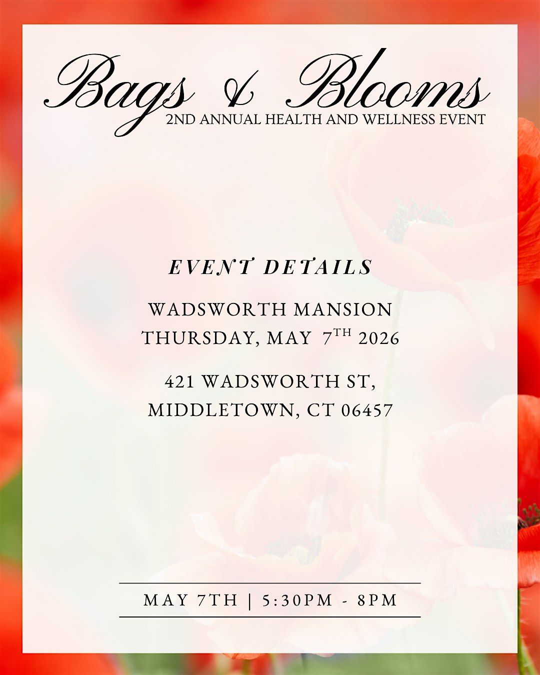 Join us for an unforgettable evening of elegance, wellness, and community at the 2nd.Annual Bags & Blooms Health and Wellness Event.About this Event