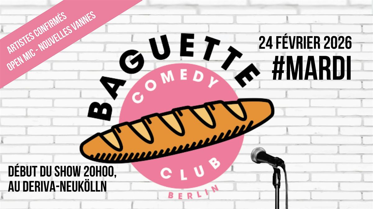 Le Baguette Comedy Club vous invite au Deriva-Neukölln-, le 24 février (on commencera à l'heure, soit à 20h00) pour la nouvelle édition du Baguette Comedy Club - Artistes confirmés - Open Mic - Nouvelles vannes !