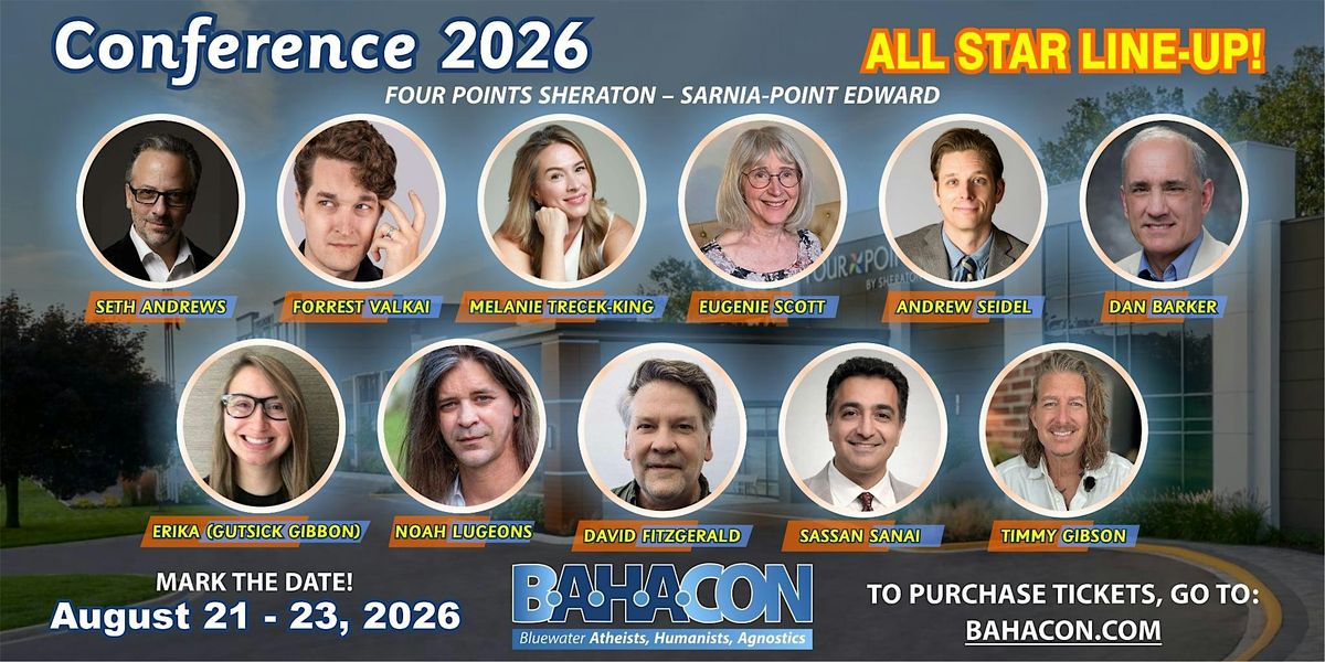 BAHA (Bluewater Atheists, Humanists & Agnostics) is a Canadian non-profit organization dedicated to promoting reason, compassion, and secular humanist values — while giving back to our local communities. All conference profits are donated to local charities.