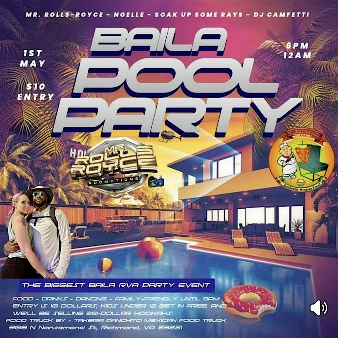 Baila Pool Party Our First Fridays Latin Night on May 1st just got a MAJOR upgrade… we’re going POOLSIDE! 🌴🔥 Brought to you by Mr. Rolls-Royce and Bailamos RVA.