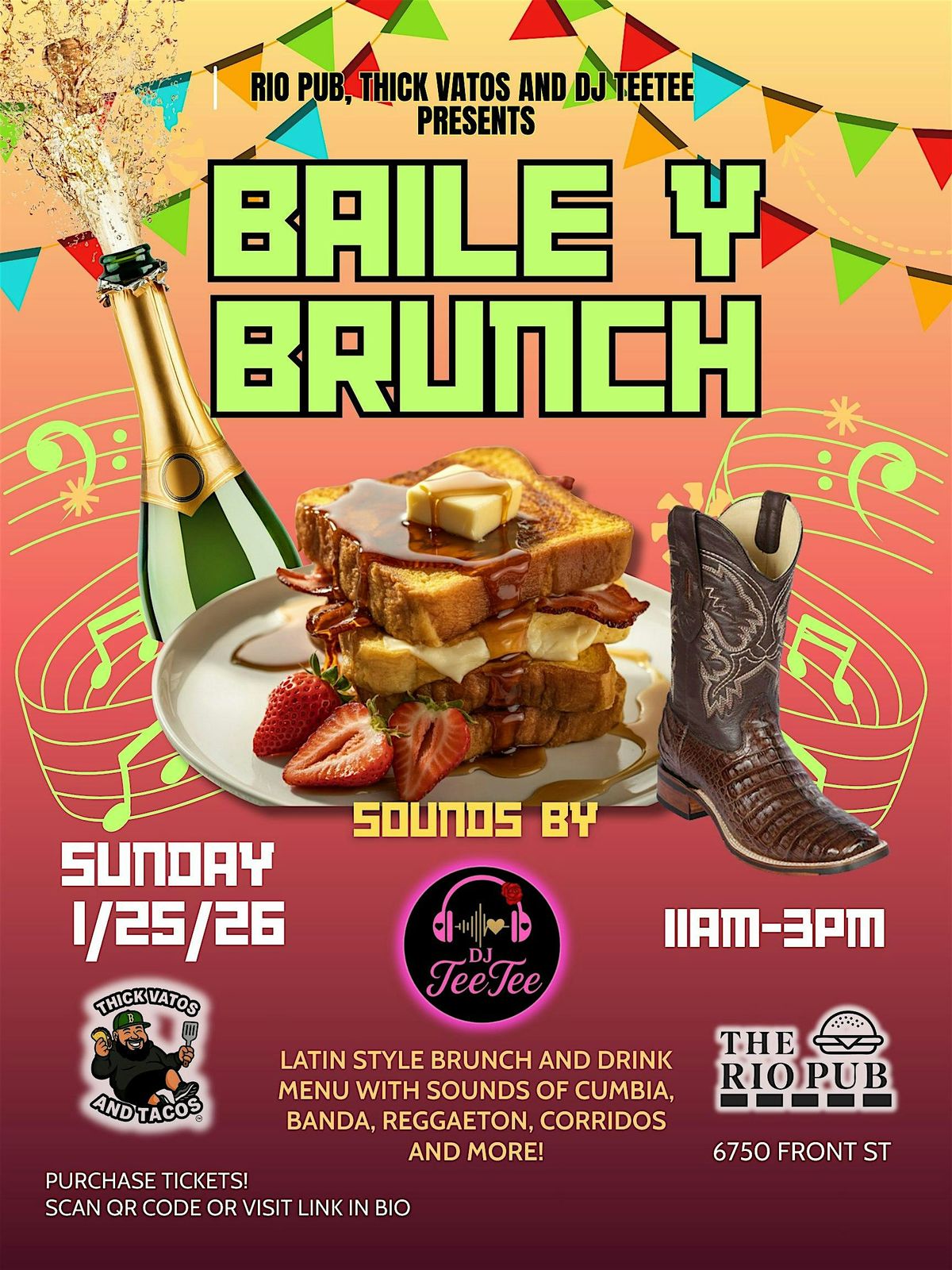 Grab your crew, rock your best brunch fit (boots welcome), and come ready to baile, brunch, and vibe all afternoon. 💃🏽🥂🔥