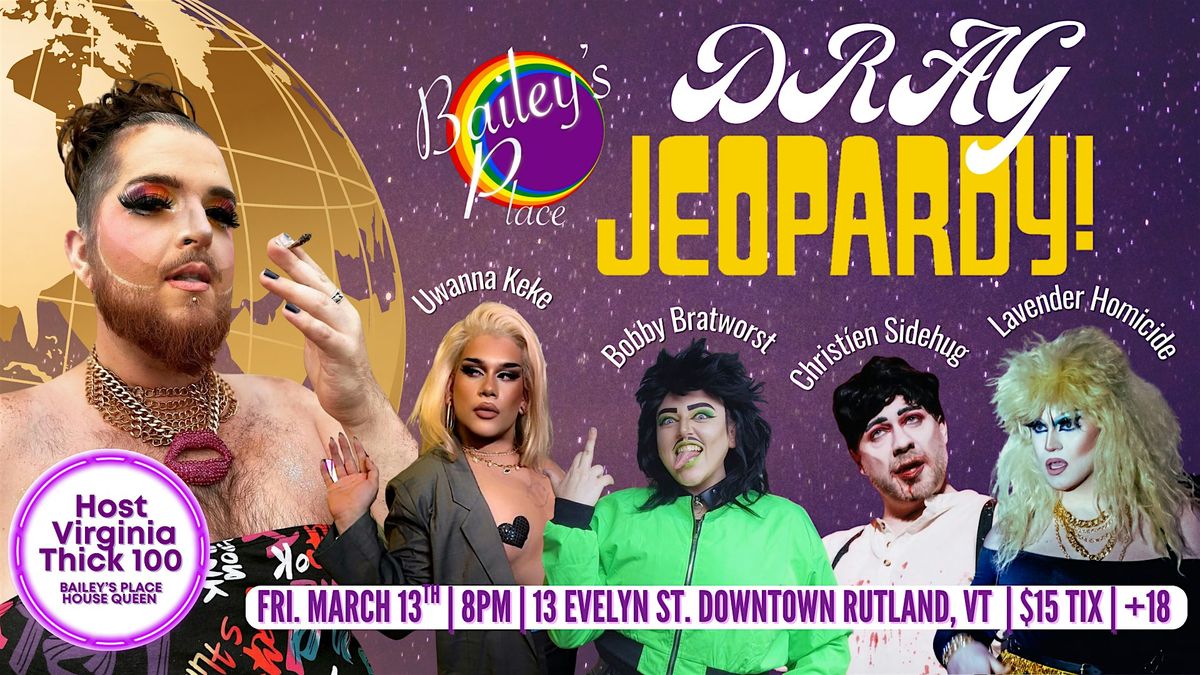 Hosted by none other than Virginia Thick 100—your favorite drag queen’s favorite drag queen—Drag Jeoprady is HERE at Bailey's Place on March 13th, 2026.