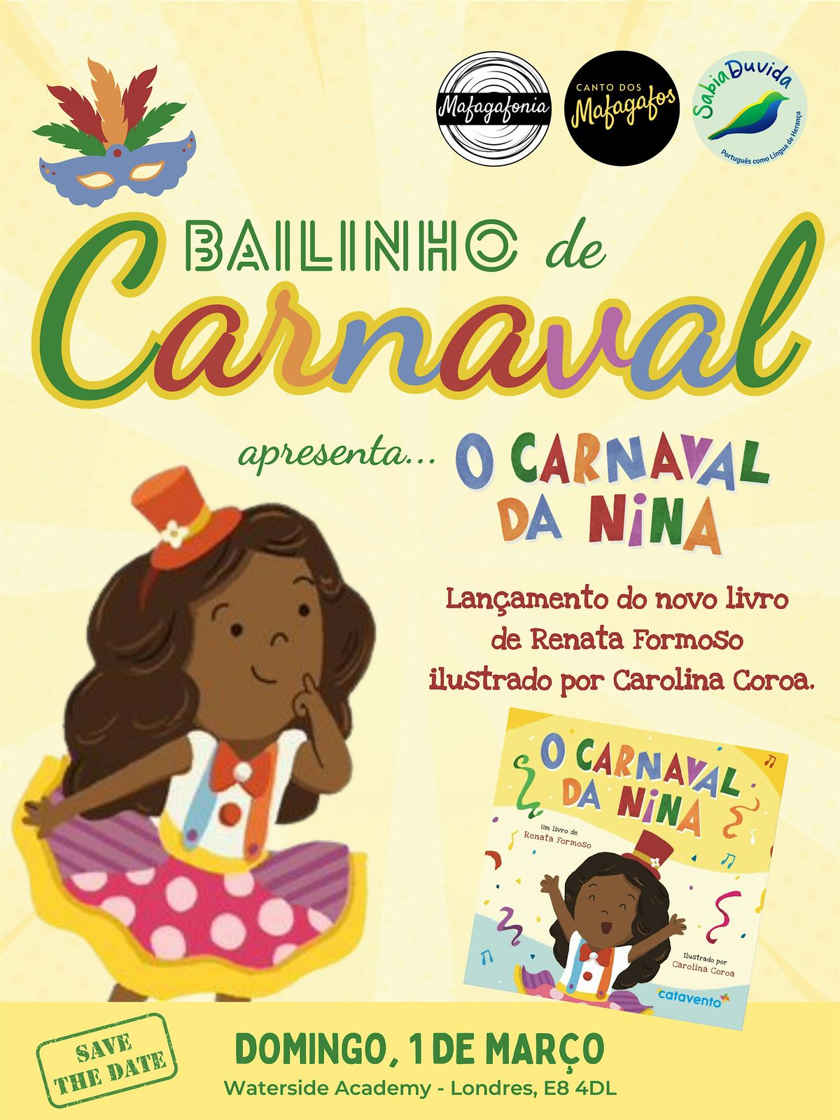 "O Carnaval da Nina" – Lançamento do novo livro de Renata Formoso, ilustrado por Carolina Coroa.