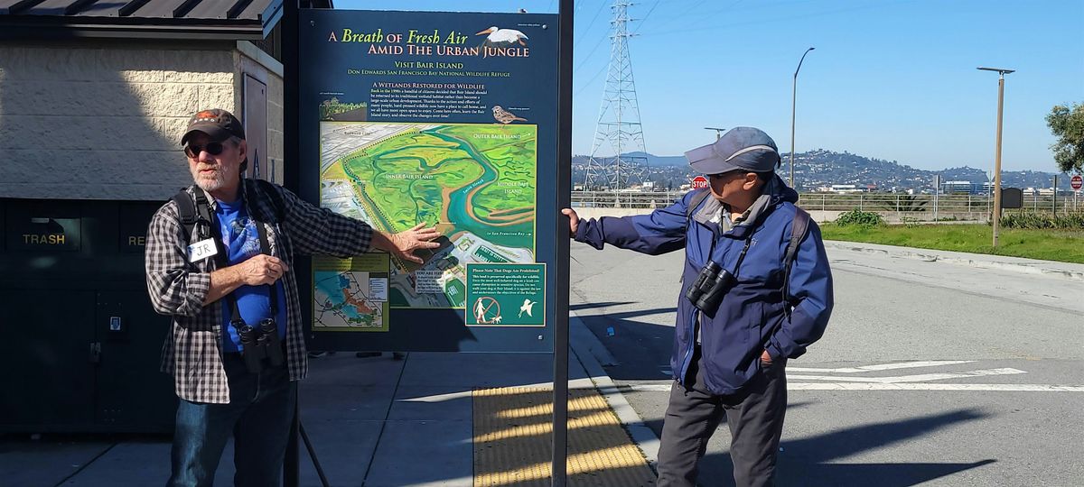 Directions: From US 101, exit Whipple Ave. Heading east, it winds for 0.5 mile, becoming E. Bayshore Rd, then Bair Island Rd. Meet at the Don Edwards National Wildlife Refuge Bair Island Trail parking lot. We’ll have loaner binoculars.