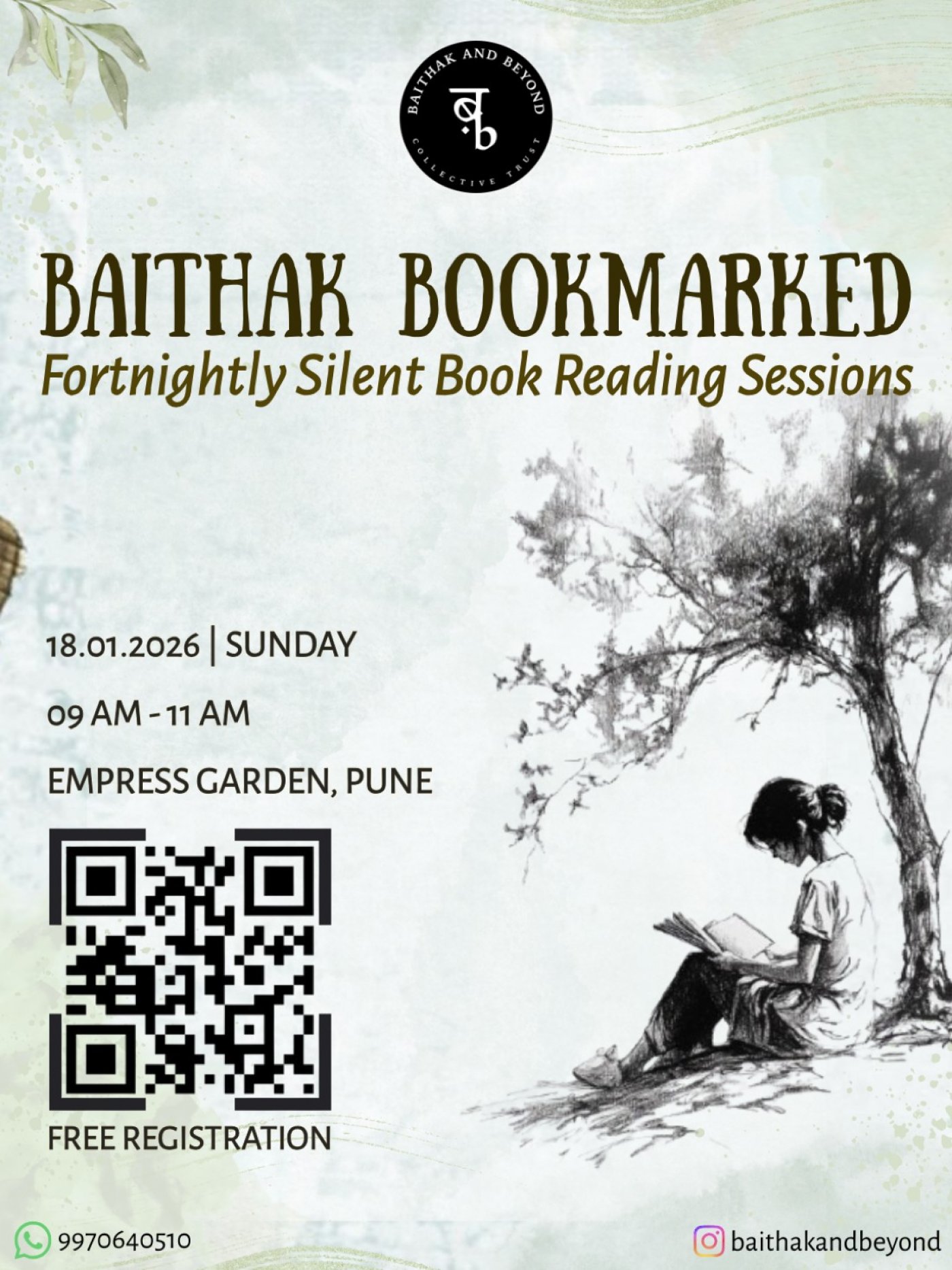 Baithak and Beyond invites you to its new 2026 initiative- BOOKMARKED, a fortnightly silent session of reading books in solace and quiet.