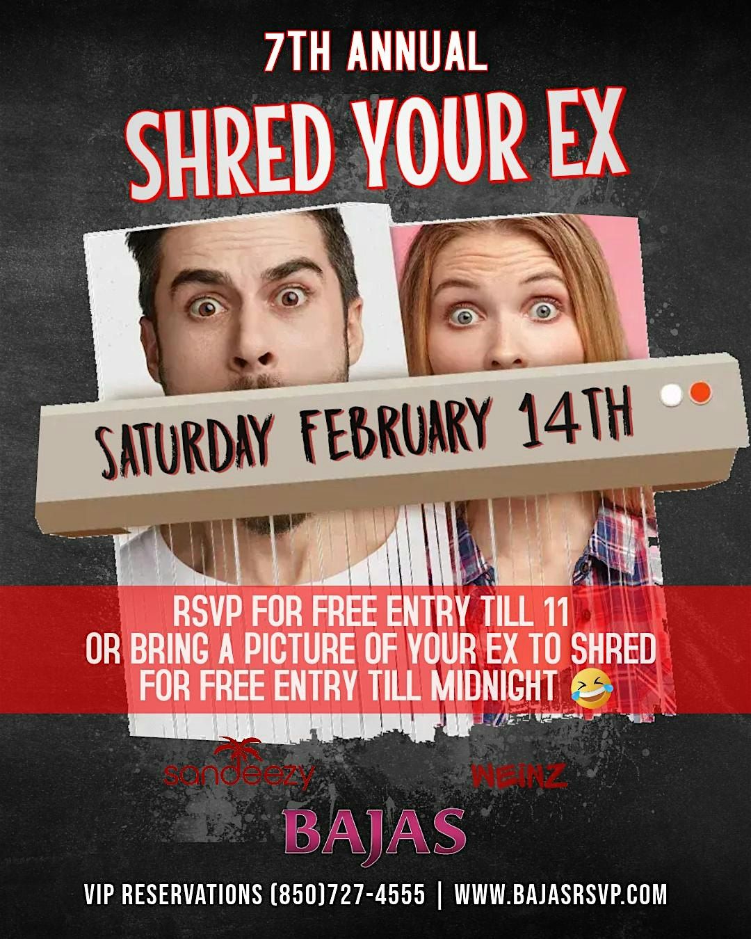 or Bring a picture of your ex to Bajas Saturdays to shred👅 (in our shredder) and receive Free Entry till Midnight 🤣