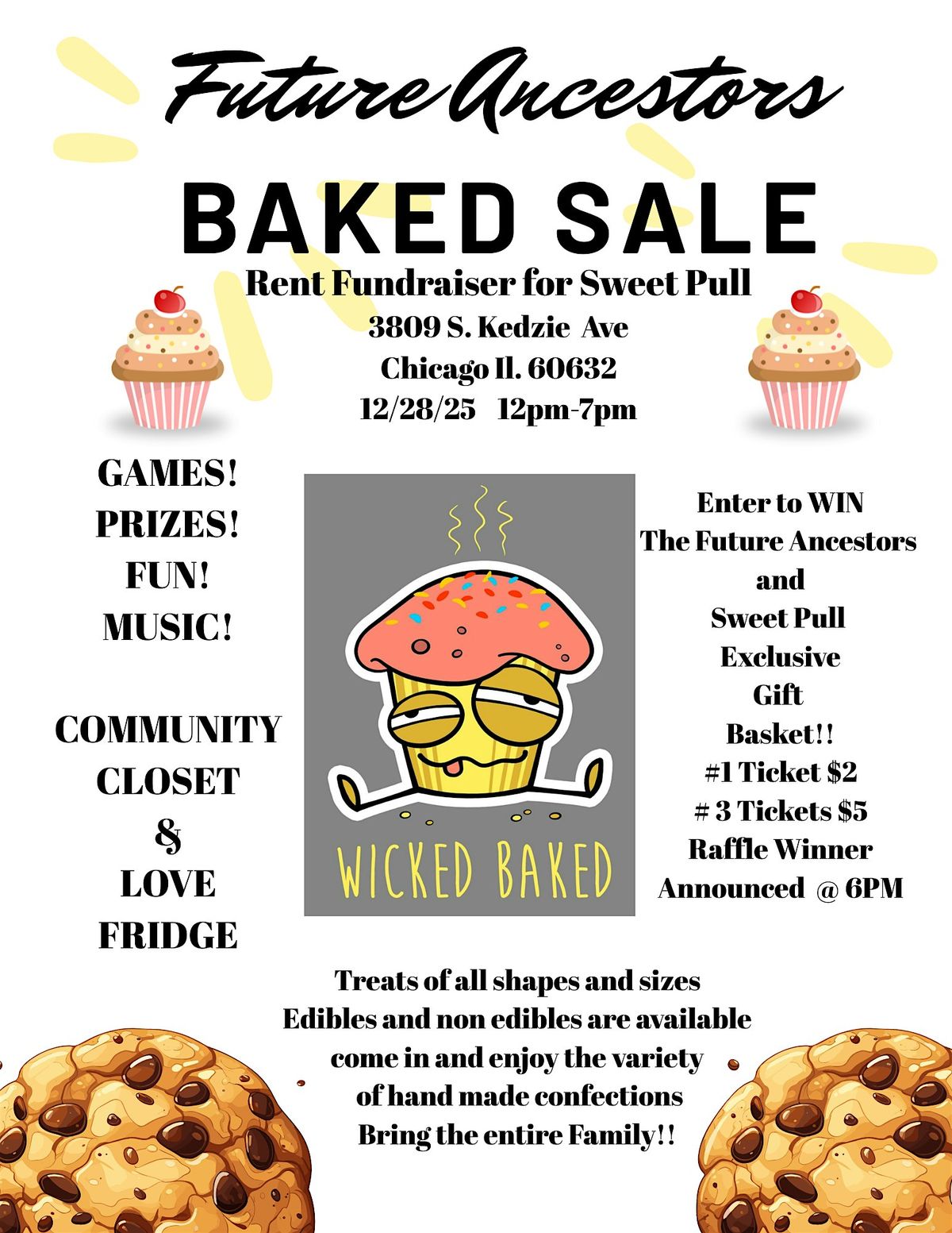 Hey everyone! Come join us in person for a delicious Baked Sale to help raise rent funds for Sweet Pull. Treat yourself to some tasty goodies and support a great cause at the same time. Don't miss out on the fun, yummy vibes, and good company!