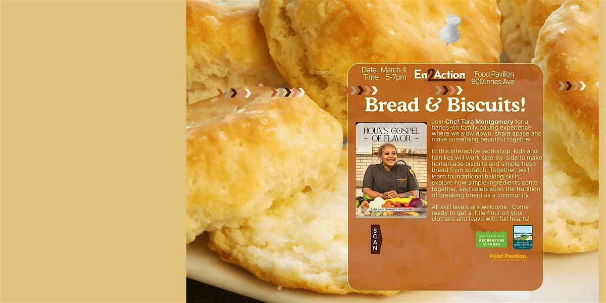 In this interactive workshop, kids and families will work side-by-side to make homemade biscuits and simple fresh bread from scratch. Together, we’ll learn foundational baking skills, explore how simple ingredients come together, and celebration the tradition of breaking bread as a community.