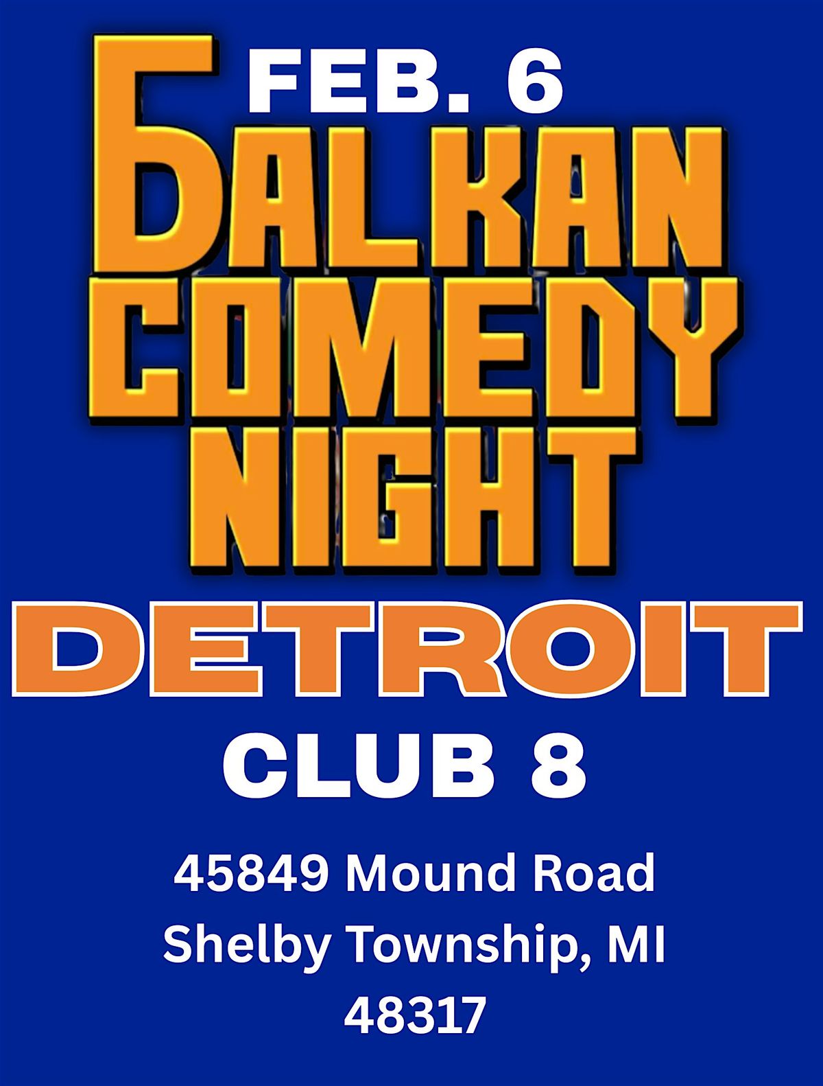 Balkan Comedy Night returns to Detroit at Club 8 for a one night only show featuring the funniest Balkan Comedians from around the United States. The night of comedy will be hosted by Ryan Radsinovic (LA) and feature performances from Sasha Srbulj (NYC), Luka Loncar (Chicago), Vic Gjonaj (LA) and Manolis Zontanos (Toronto) along with local favorite Denis Bajric. Music provided by DJ Who (Detroit) and there will be a meet and greet after the show. The show is in English with Serbian, Bosnian, Greek, and Montenegrin references. Doors will open at 7:30pm and the show will start at 8:15pm.