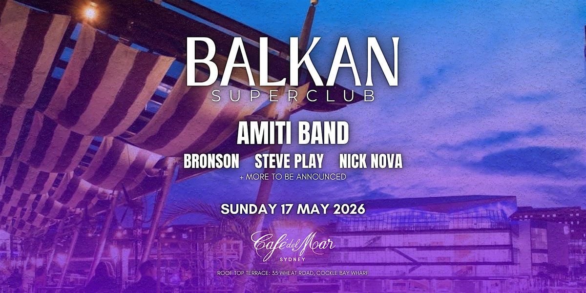 BALKAN SUPERCLUB is back by popular demand at Cafe Del Mar on Sunday 17th May ft. Amiti Band, Steve Play, Nick Nova, Bronson & more. Experience a Balkan Event like no other with a beatiful sunset, cocktails, listening to live Balkan entertainment overlooking Sydney Harbour. Very limited VIP tables available.