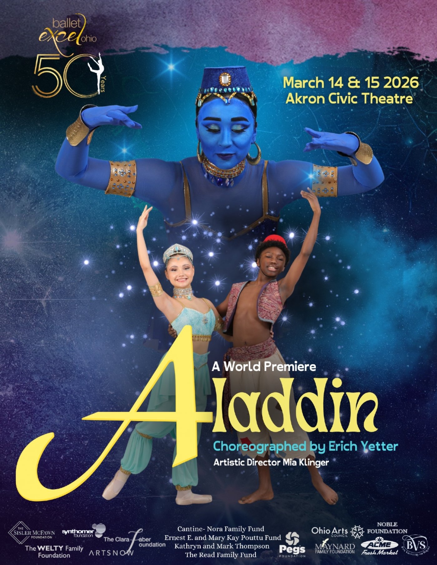 Experience the magic of Aladdin like never before! On March 14th and 15th, Ballet Excel Ohio lights up the Akron Civic Theatre with a spectacular new production choreographed by Erich Yetter. From the colorful streets of Akrabah to the glittering Cave of Wonders, this thrilling ballet brings to life Aladdin’s daring adventures, the power of the Genie, and his heart-stirring romance with the Princess. Packed with breathtaking dancing, stunning music, and stage magic that will leave you spellbound, Aladdin is an unforgettable journey of love, courage, and wishes come true. Perfect for families, arts lovers, and dreamers of all ages—don’t miss your chance to be part of the magic!