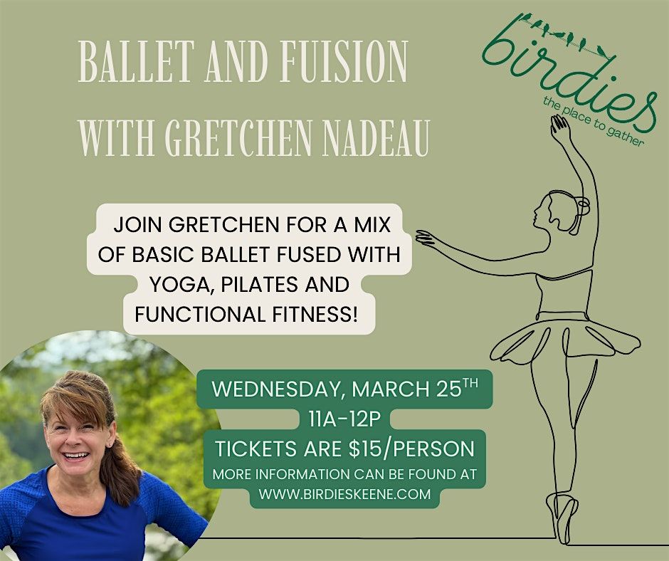 Join Gretchen for a mix of basic ballet fused with yoga, pilates, and functional fitness!