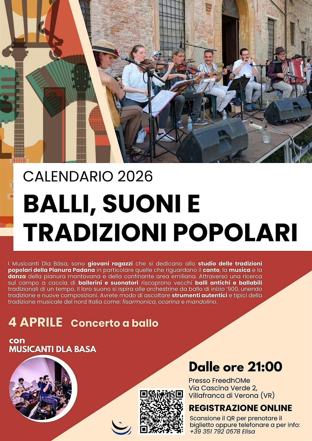 I Musicanti Dla Bása, sono giovani ragazzi che si dedicano allo studio delle tradizioni popolari della Pianura Padana in particolare quelle che riguardano il canto, la musica e la danza della pianura mantovana e della confinante area emiliana. Attraverso una ricerca sul campo a caccia di ballerini e suonatori riscoprono vecchi balli antichi e ballabili tradizionali di un tempo. Il loro suono si ispira alle orchestrine da ballo di inizio ‘900, unendo tradizione e nuove composizioni. Avrete modo di ascoltare strumenti autentici e tipici della tradizione musicale del nord Italia come: fisarmonica, ocarina e mandolino.