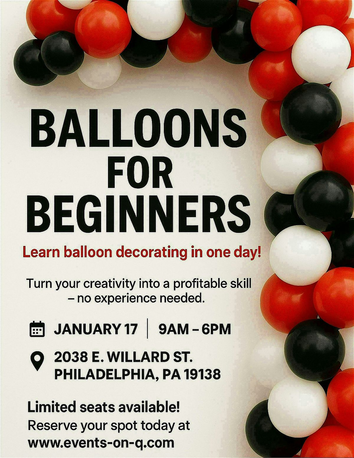 Learn how to design luxury balloon columns, arches, and garlands — the ones clients pay hundreds for… and event planners need every weekend. Join my Balloons for Beginners Class on January 17 and step into your new skill set — and a new income stream.
