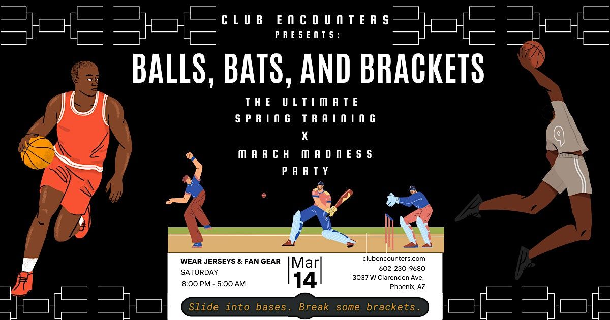 Phoenix is alive with Spring Training heat and March Madness chaos — and tonight, Club Encounters brings both under one wild, seductive roof. Step into a world where bats meet brackets, jerseys meet curves, and every guest is already in scoring position. Whether you’re here to pitch, shoot, dribble, or slide into someone’s DMs, this is the night where every play is a power move and every connection becomes a highlight reel.