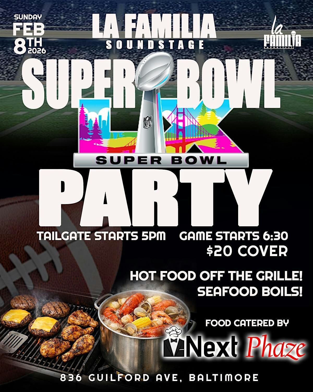 Come watch the BIG Game on Baltimore’s BIGGEST LED Screen! Tailgate catered by Next Phaze! Great adult atmosphere! Bring your entire crew!