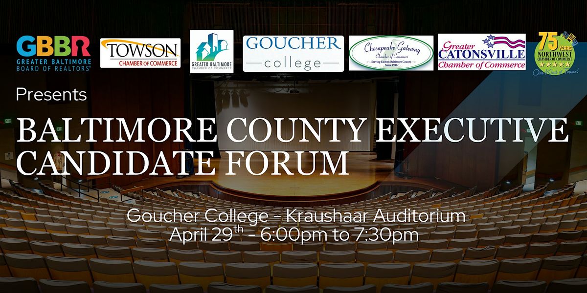 GBBR along with Goucher College, Towson, Greater Baltimore, Greater Catonsville, and Chesapeake Gateway Chamber of Commerces and the Maryland Building Industry Association will host a Baltimore County Executive Candidate Forum, bringing together the candidates for an opportunity to share their perspectives on issues impacting our industry, our communities, and the future of Baltimore County.