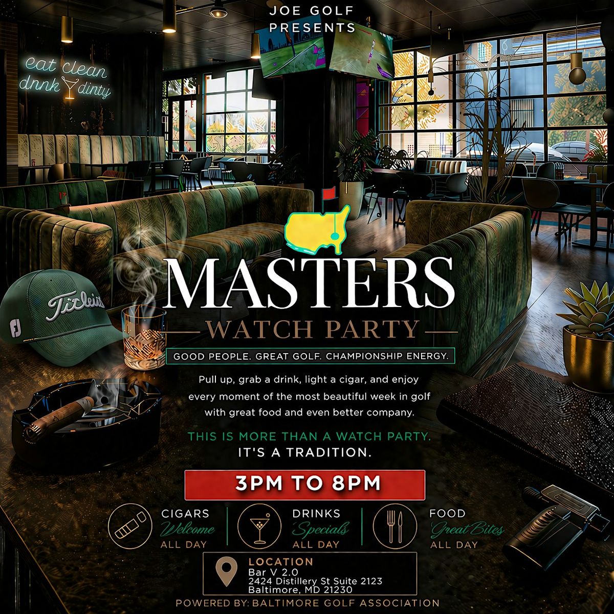 Set in the Baltimore Peninsula at Bar V 2.0, this gathering brings together Sunday golfers for an elevated experience — featuring food and drink specials, meaningful conversation, and a shared appreciation for the game.