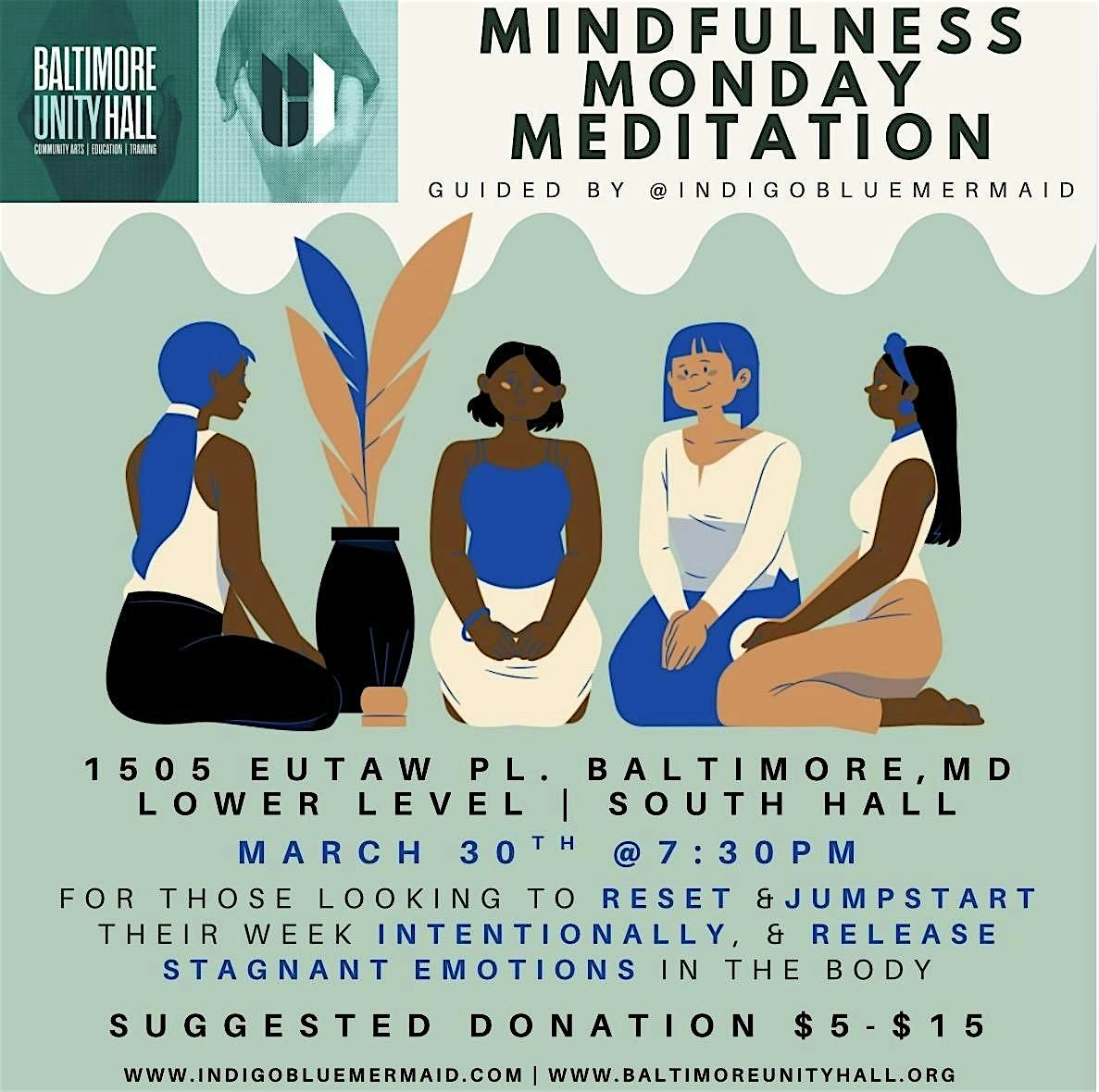 This class is presented to you in partnership with Baltimore Unity Hall and Indigo Blue Mermaid to provide community healing at an accessible price to promote wellness and stress management in the community.