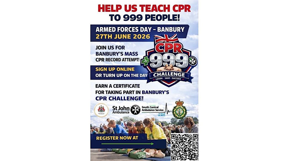 We’re aiming to teach 999 people CPR at Armed Forces Day on 27/06/26Take part in a fun, life-saving challenge and help Banbury set a record