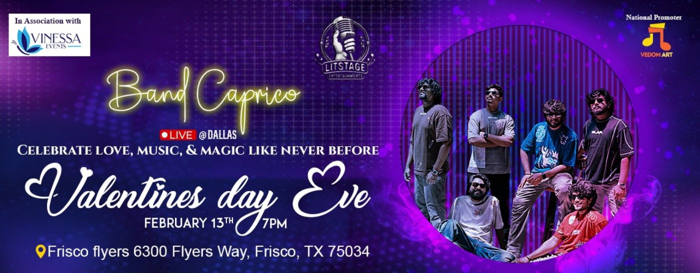 Join us for a massive Valentine’s Eve celebration with the sensational Band Capricio, straight from Hyderabad.