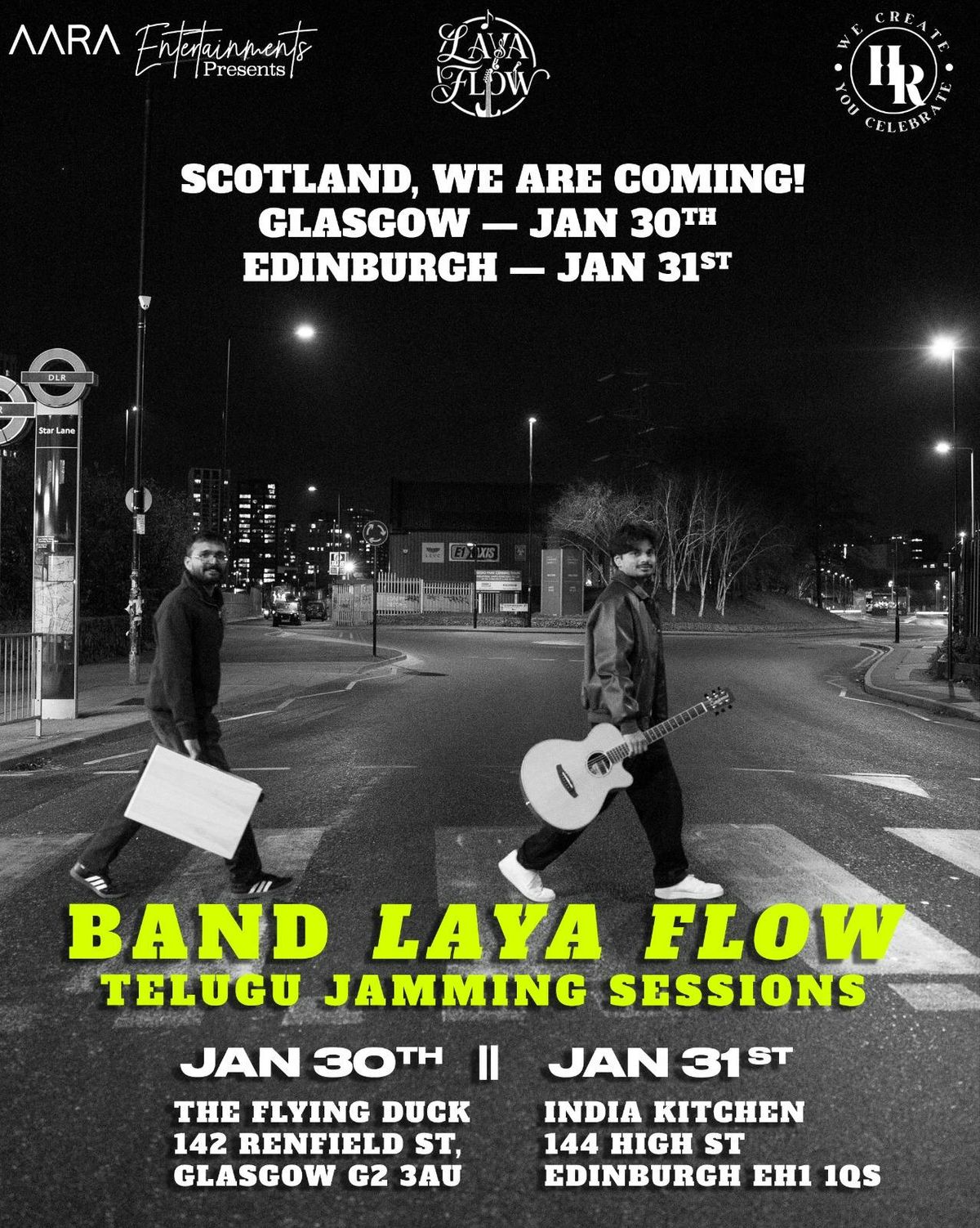 🎶 BAND LAYA FLOW - TELUGU LIVE MUSIC JAMMING NIGHT 🎙️🎸 | EDINBURGH 🏴 | 31 Jan 2026📍India Kitchen, Royal Mile - 144 High Street, Edinburgh EH1 1QS31 JAN 2026, SATURDAY; 8PM - 11PMAfter electrifying live jamming sessions across England, BAND LAYA FLOW, UK's First Telugu Live Music Band, bring their high-energy Telugu fusion experience to Scotland for two special nights!