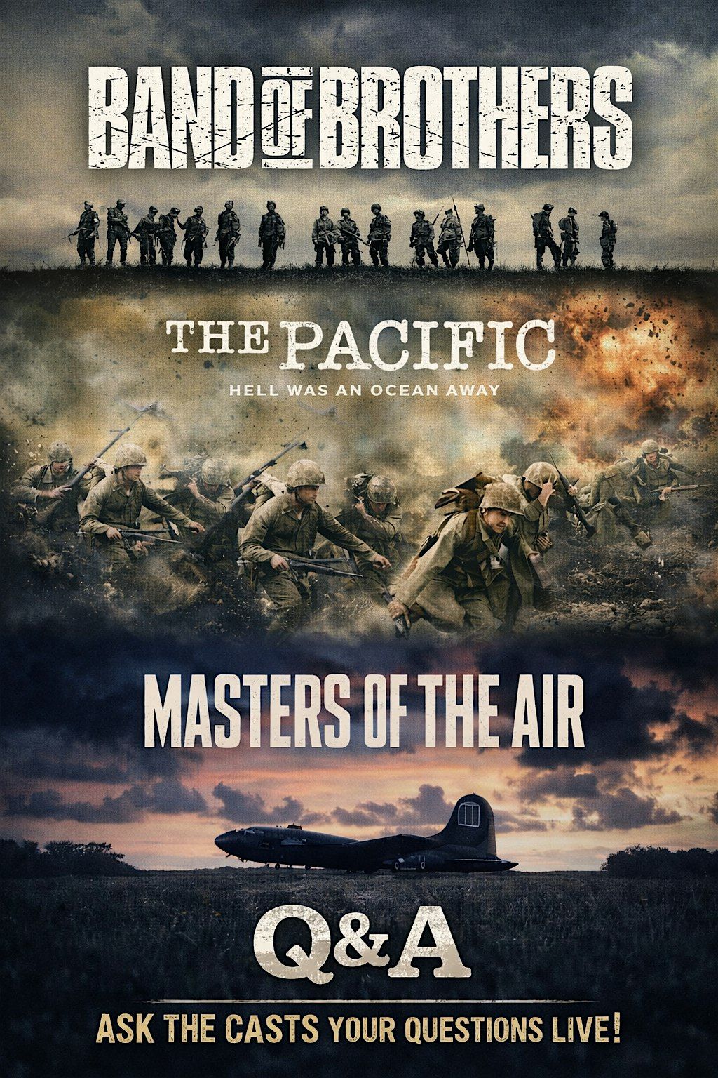 Live Q+A with the cast from three award winning WWII shows, Band of Brothers, the Pacific, and Masters of the Air.
