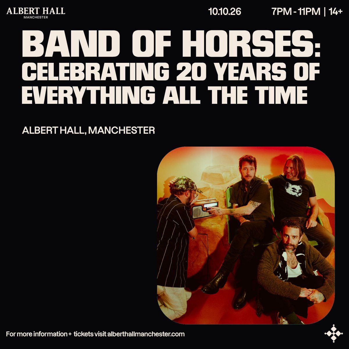 Band of Horses at Albert Hall Manchester🌟 Be part of history at Band of Horses Manchester Tickets, an extraordinary gathering that will captivate your imagination! 🏛️ The prestigious Albert Hall Manchester in Manchester, EN sets the stage for an unforgettable experience on October 10th, 2026 at 07:00 PM. ✨ They are bringing together the finest elements of entertainment and innovation to create moments that will take your breath away. From the moment you arrive, you'll be immersed in an atmosphere of wonder and excitement. 🎯 This carefully planned event ensures every guest experiences something truly special. 🎫 Get your tickets at 258.66 EUR. 🎊 Early booking is recommended for this must-attend event of the season!