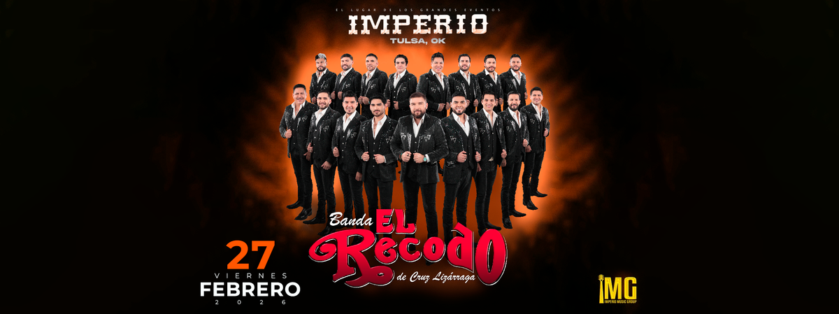 Don't miss BANDA EL RECODO DE CRUZ LIZARRAGA happening at Imperio Event Center, Tulsa, OK, United States on 2026-02-27T21:00:00-06:00. A great evening with good music and a laid-back atmosphere awaits you. Invite your friends for a night out! **Event Details:** * **Location:** Imperio Event Center, Tulsa, OK, United States Register now to secure your spot at this landmark event. #BANDAELRECODODECRUZLIZARRAGA #event #exciting #TulsaEvents #OKEvents