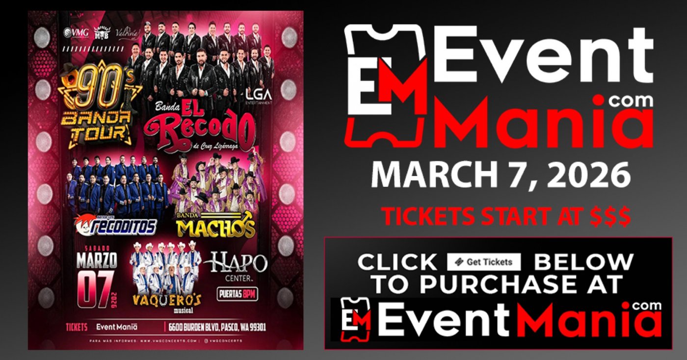Compra tus boletos aqui: https://eventmania.com/events/90s-banda-tour-con-banda-el-recodo-y-mas-pasco-wa-pasco-wa-2026-03-07/yFlB/seat