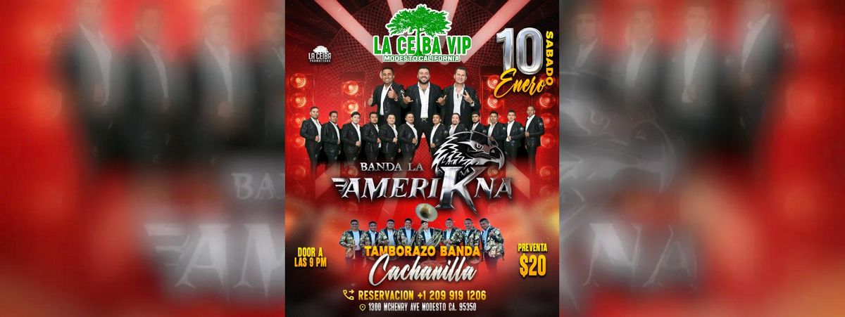 Don't miss BANDA LA AMERIKNA & TAMBORAZO BANDA CACHANILLA happening at LA CEIBA VIP , Modesto, CA, United States on 2026-01-10T21:00:00-08:00. A great evening with good music and a laid-back atmosphere awaits you. Invite your friends for a night out! **Event Details:** * **Location:** LA CEIBA VIP , Modesto, CA, United States Reserve your place now for an unparalleled exciting experience. #BANDALAAMERIKNA&TAMBORAZOBANDACACHANILLA #event #exciting #ModestoEvents #CAEvents