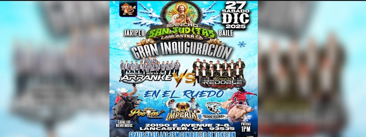 Discover why 'BANDA LA NUEVA DE ARRANKE VS BANDA EL REDOBLE' is generating buzz in Rancho San Juditas, Lake Los Angeles, CA, United States. This exciting event brings together industry leaders and enthusiasts. Be part of this transformative experience that's shaping the future of exciting events. Reserve your place now for an unparalleled exciting experience. #BANDALANUEVADEARRANKEVSBANDAELREDOBLE #event #exciting #Lake Los AngelesEvents #CAEvents