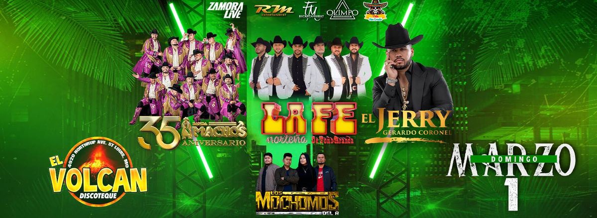 Don't miss Banda Machos, La Fe Norteña , Jerry Coronel happening at El Volcan Discoteque, St. Louis, MO, United States on 2026-03-01T21:00:00-06:00. A great evening with good music and a laid-back atmosphere awaits you. Invite your friends for a night out! **Event Details:** * **Location:** El Volcan Discoteque, St. Louis, MO, United States Register now to secure your spot at this landmark event. #BandaMachos,LaFeNorteña,JerryCoronel #event #exciting #St. LouisEvents #MOEvents