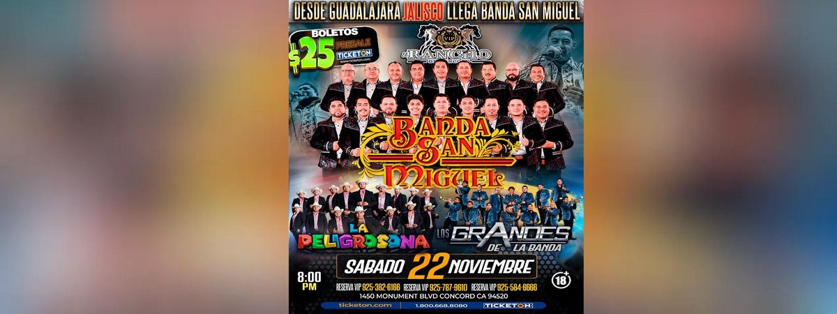 Discover why 'BANDA SAN MIGUEL, LA PELIGROSONA & MAS' is generating buzz in El Rancho De Concord, Concord, CA, United States. This exciting event brings together industry leaders and enthusiasts. Be part of this transformative experience that's shaping the future of exciting events. Reserve your place now for an unparalleled exciting experience. #BANDASANMIGUEL,LAPELIGROSONA&MAS #event #exciting #ConcordEvents #CAEvents