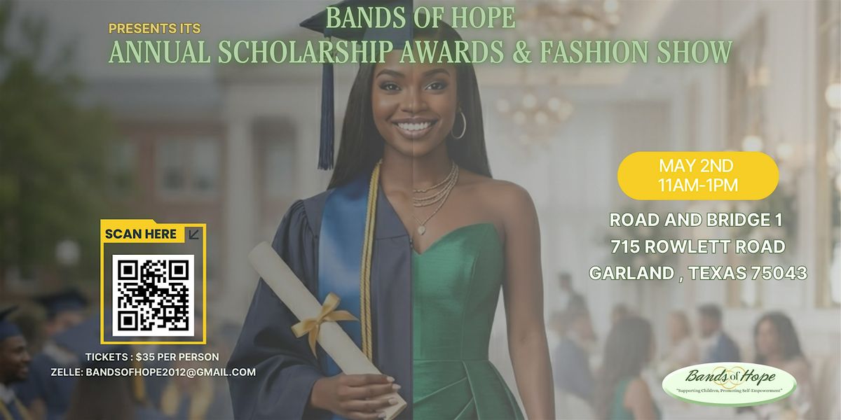 Join us for an inspiring afternoon at the 2nd Annual Bands of Hope Scholarship Awards and Fashion Show Luncheon, a celebration of excellence, style and community impact. The special event honors four outstanding high school seniors who will be awarded scholorships in recognition of their academic achievements, leadership, and dedication to their future goals. The luncheon will also feature a fun fashion show, showcasing creativity and confidence on the runway. Bands of Hope is committed to investing in the next generation's education through scholorships and community support.