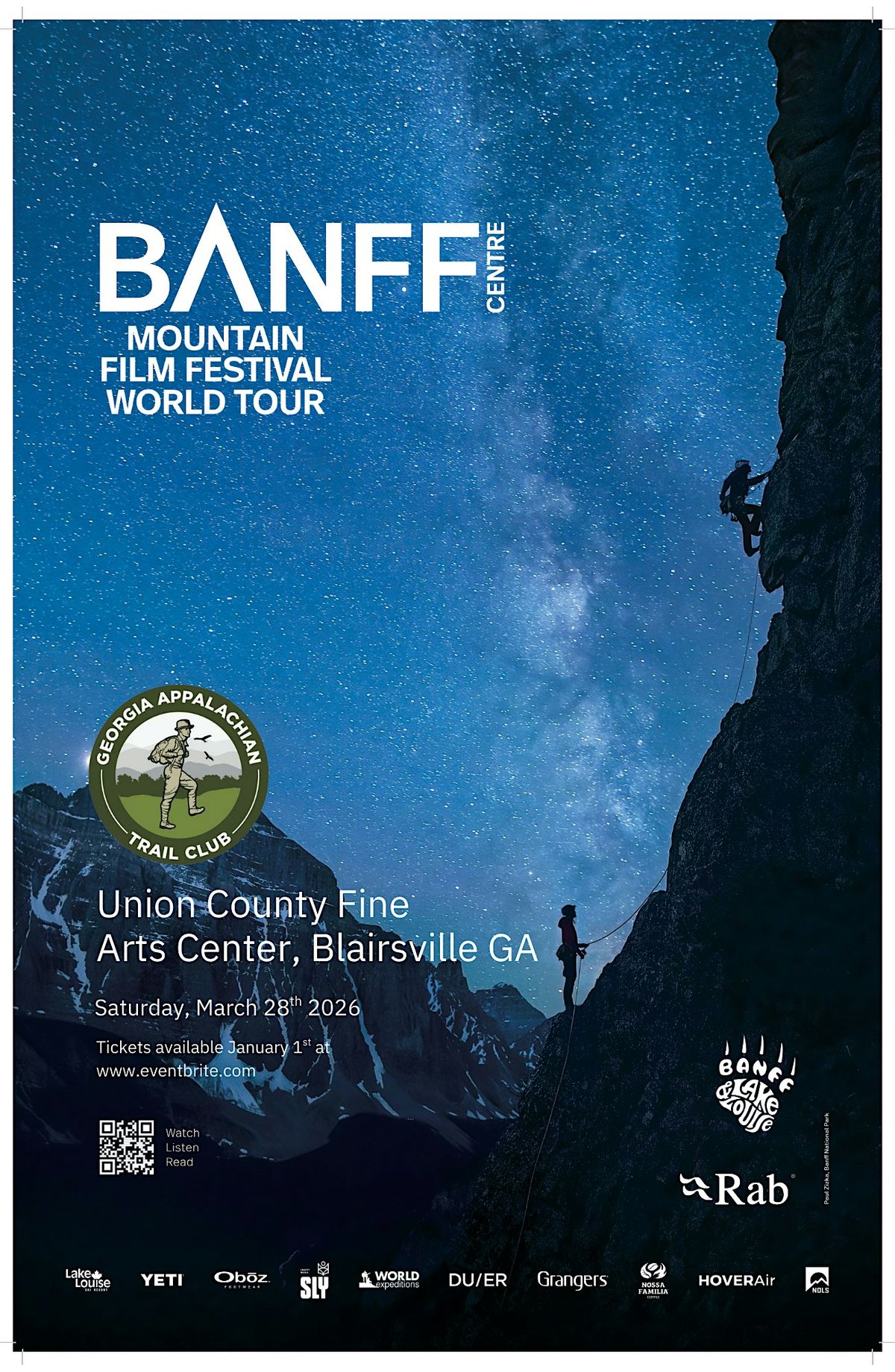 The Banff Mountain Centre World Tour returns to the Union County Fine Arts Center in Blairsville, GA on March 28th, 2026.