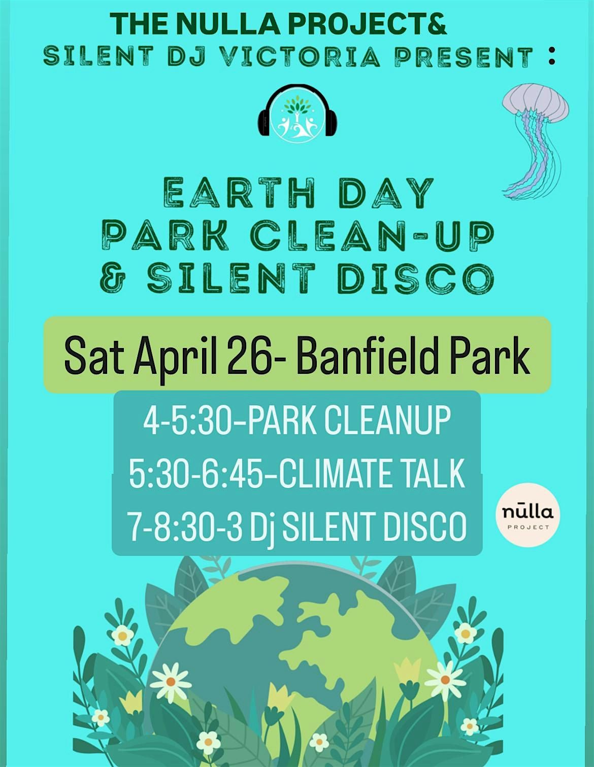 -Partial proceeds go to The NULLA Project, a Victoria-based initiative that aims to improve single use, "To Go" culture with its reusable containers, cups and glasses. Check out this awesome local project here: https://thenullaproject.ca/The Nulla Project - Reusable Cup Service. The founders will be at the park cleanup, climate talk, & silent disco to answer any questions.. and they'll be offering cultured kombucha by donation too!