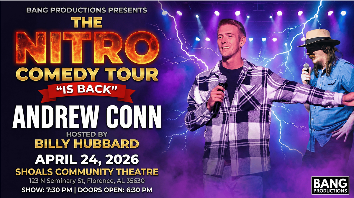 The Nitro Comedy Tour brings big laughs and high energy to the stage—hosted by Billy Hubbard and featuring viral fan-favorite Andrew Conn. Expect fast-paced stand-up, sharp crowd work, and a live show that hits hard from the first joke to the last.
